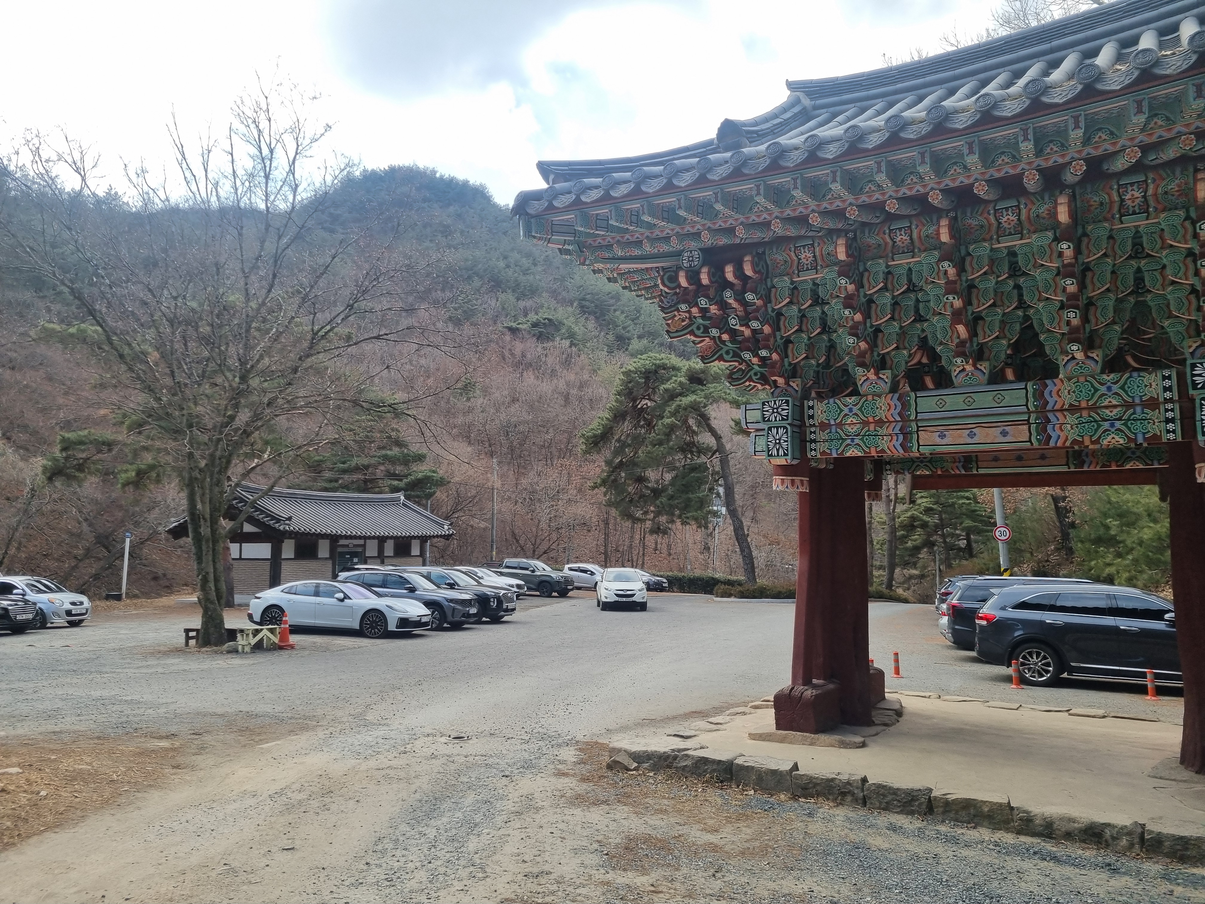 사찰 아래 공용화장실 주변 : 약 30대 정도의 주차 가능하며, 사찰 오는 포장도로 주변 군데군데 주차 가능 장소 있습니다.