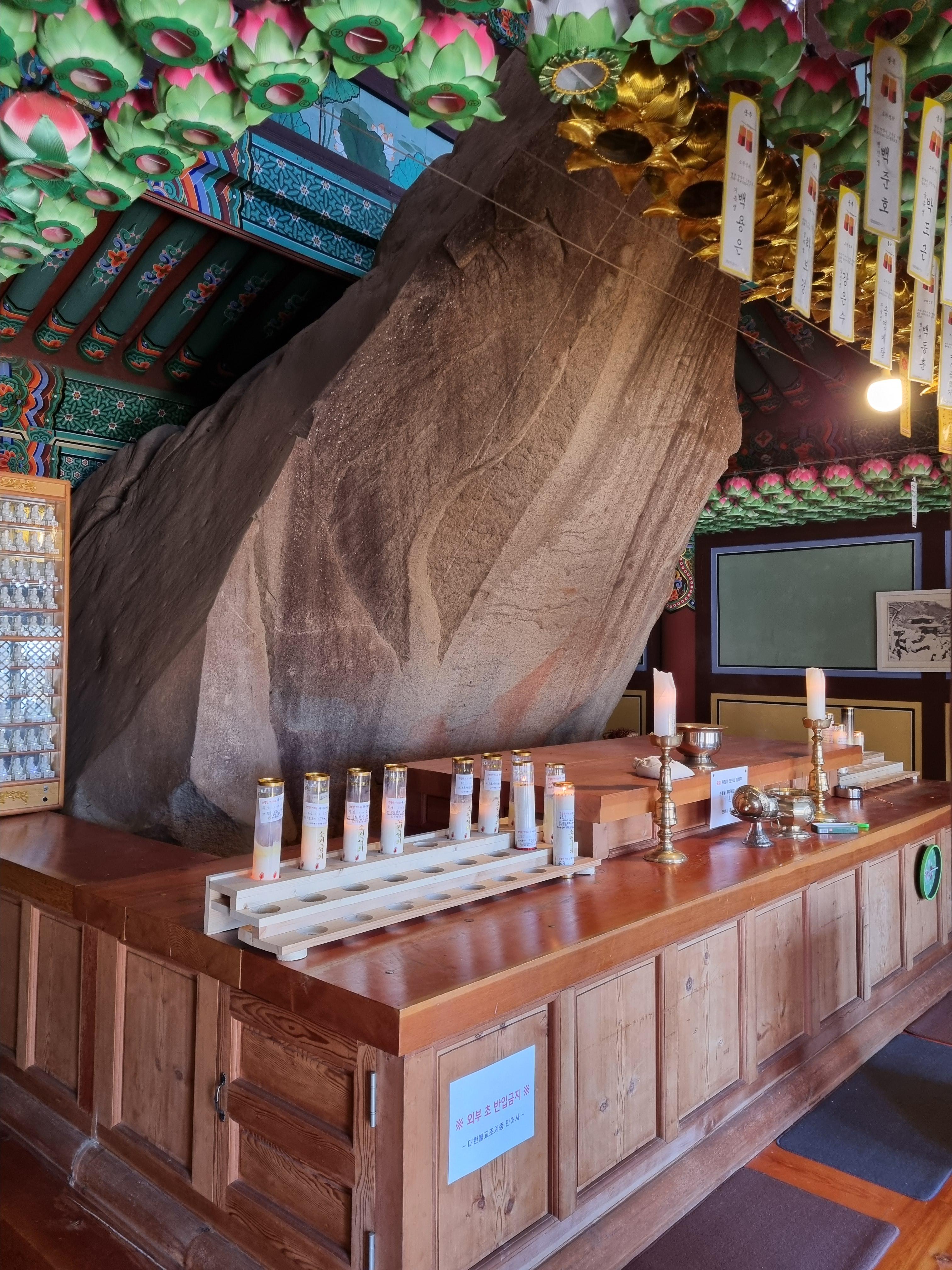 미륵전의 미륵바위 : 용왕의 아들이 변해 되었다는 전설이 있습니다.