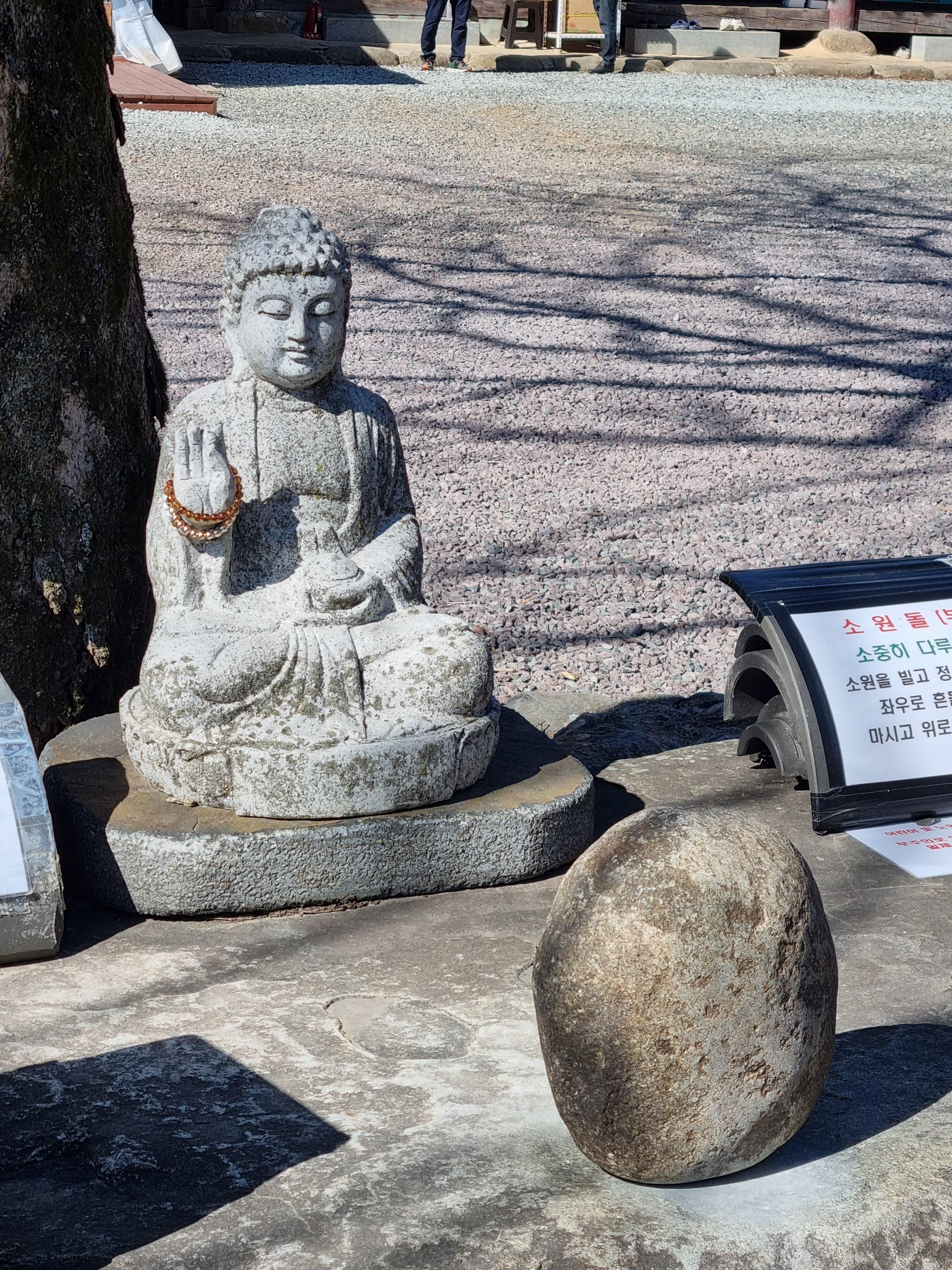 대웅전 오르기전 계단 끝자락에 큰나무 밑에 소원을 들어주는 돌이 있습니다. 소원을 빌기전에 한 번 들어보고 난 후 소원을 빌고 다시 들었을 때 돌이 들리지 않으면 소원이 이루어 진다고 합니다. 자신의 소원을 한번씩 빌고 성취여부를 판가름해 보는 것도 재미가 있습니다.