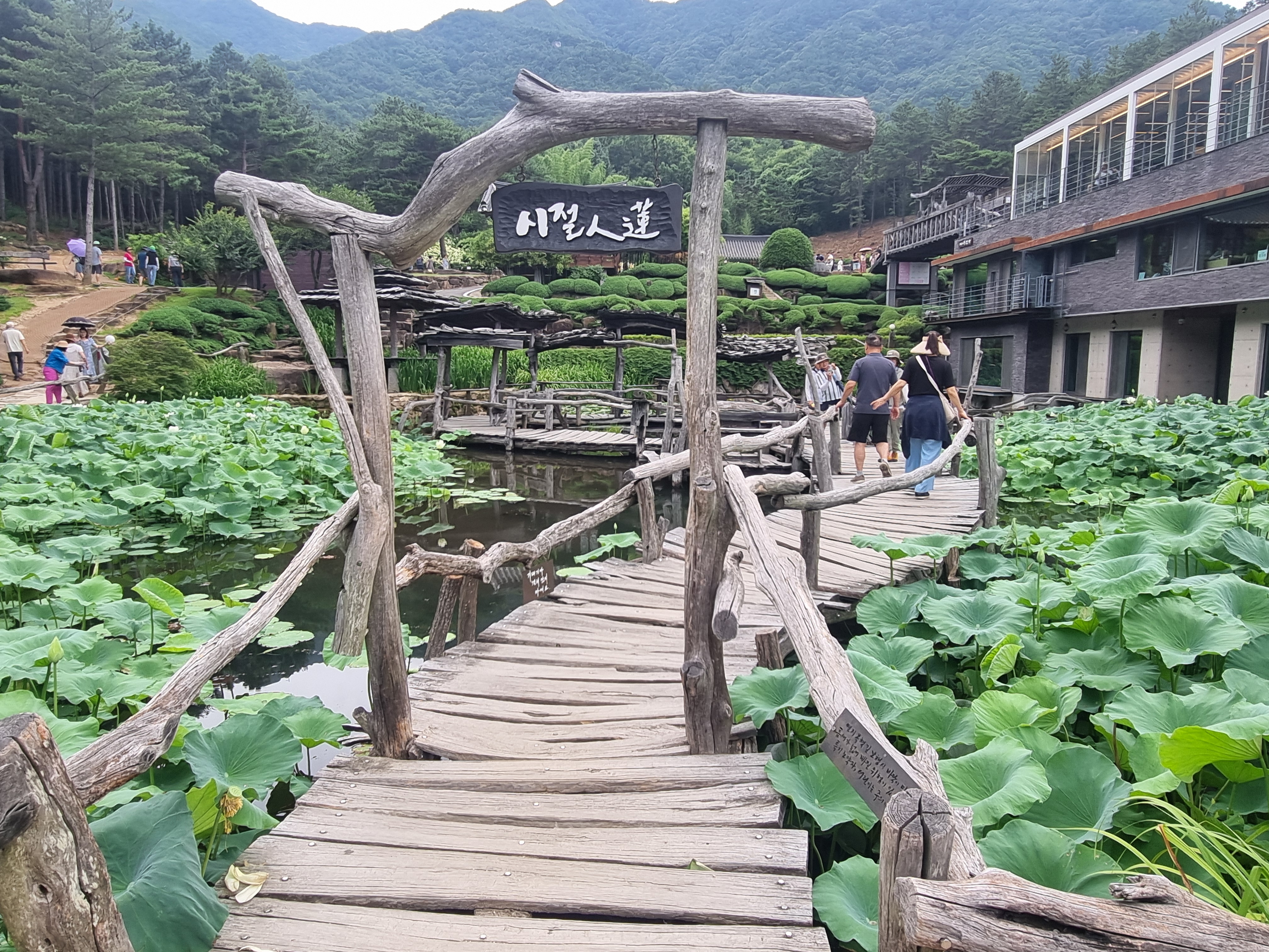 - 연못을 둘러싼 목조 산책로(시절인연)는 포토존으로 유명합니다.